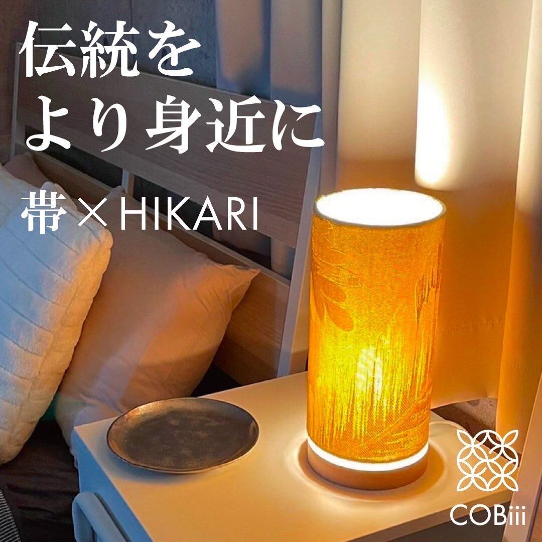 また、ランプシェードの上下から漏れる優しく柔らかな光は帯地の魅力をさらに際立たせ、